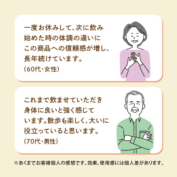 初めはクセがあると思いましたが、徐々に慣れ美味しくなってきました。お風呂上りなどに必ず飲む習慣をつけると、飲まなかった日は何かもの足りなさを感じます。根気強く続けていくと、自然な形で効果が現れてきますよ。