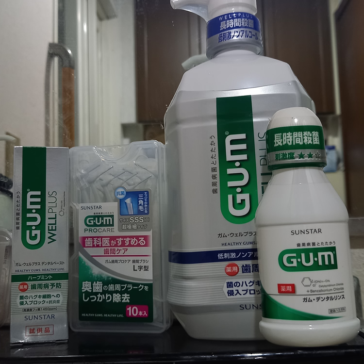 名鉄百貨店で歯みがき道に出会ったことがきっかけで、歯みがき時に使う種類が増えました。歯みがきって、ハブラシと普通のペーストだけじゃなかったのですね。特に、ガム・歯周プロケアデンタルリンスがお気に入りです。私は4人家族ですが、口腔ケア商品は、それぞれが好きなものを買ってきています。でも、次男は、このデンタルリンスが気に入ったみたいで、一緒に使っています。歯間ブラシもかかせません。ゴムタイプの歯間ブラシ(ソフトピック)は、何回使えるのですか?ソフトピックは使い捨てタイプなのですね、勉強になりました。